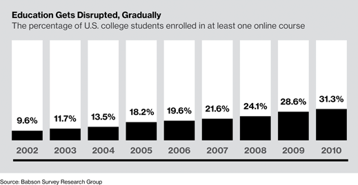 Clay Shirky draws parallels between what happened in the music business with the disruption now underway in HE in his insightful blog Napster, Udacity, and the Academy. “It’s been interesting watching this unfold in music, books, newspapers, TV, but nothing has ever been as interesting to me as watching it happen in my own backyard. Higher education is now being disrupted; our MP3 is the massive open online course (or MOOC), and our Napster is Udacity, the education startup.” He also notes that academic critics of MOOCs focus on issues of quality and a concern that the access agenda has gone too far, forgetting that the MP3 file transformed the music industry for ever despite not being of the ‘high quality’ so many people thought was essential.