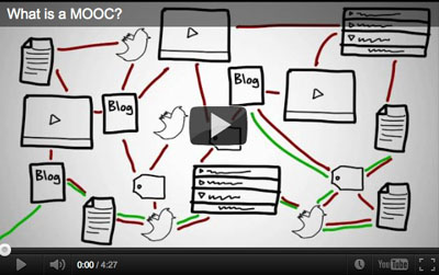 There’s probably no better introduction to this aspect of the MOOC than Dave Cormier’s YouTube clip. To Cormier (who originally coined the phrase) MOOCs promote participation, not consumption, and life-long networked learning. They’re a way to connect and collaborate. A MOOC is not a course but an event where people can get together in communities of practice. The course content is distributed not centralised – it’s what each learner finds out and shares from across the internet, not the University’s course content stored in one central location. All those Tweets, Blogs, Vlogs and websites knit together to make a knowledge corpus that can be approached and negotiated from different angles, with learners on different paths. Unlike a classroom course with a steady and incremental drip of information, a MOOC has no single path towards completion. To Cormier this allows new ideas and connections to be made, and those ideas are fed back into the network for all.